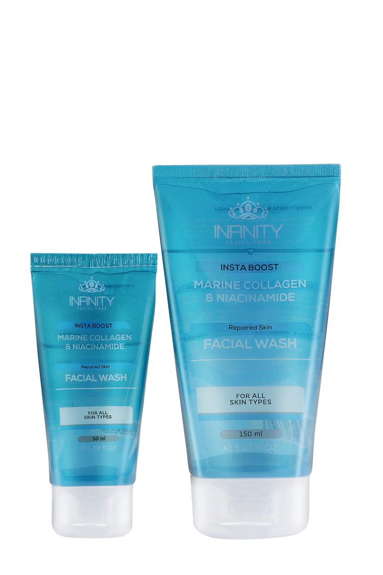 Discover radiant hydration with Facial Care Insta Boost Facial Wash Promopack 1+1, your daily go-to hydrating cleanser. This glow-enhancing formula blends marine collagen, niacinamide, and hyaluronic acid to refresh, nourish, and visibly plump your skin with every wash.
